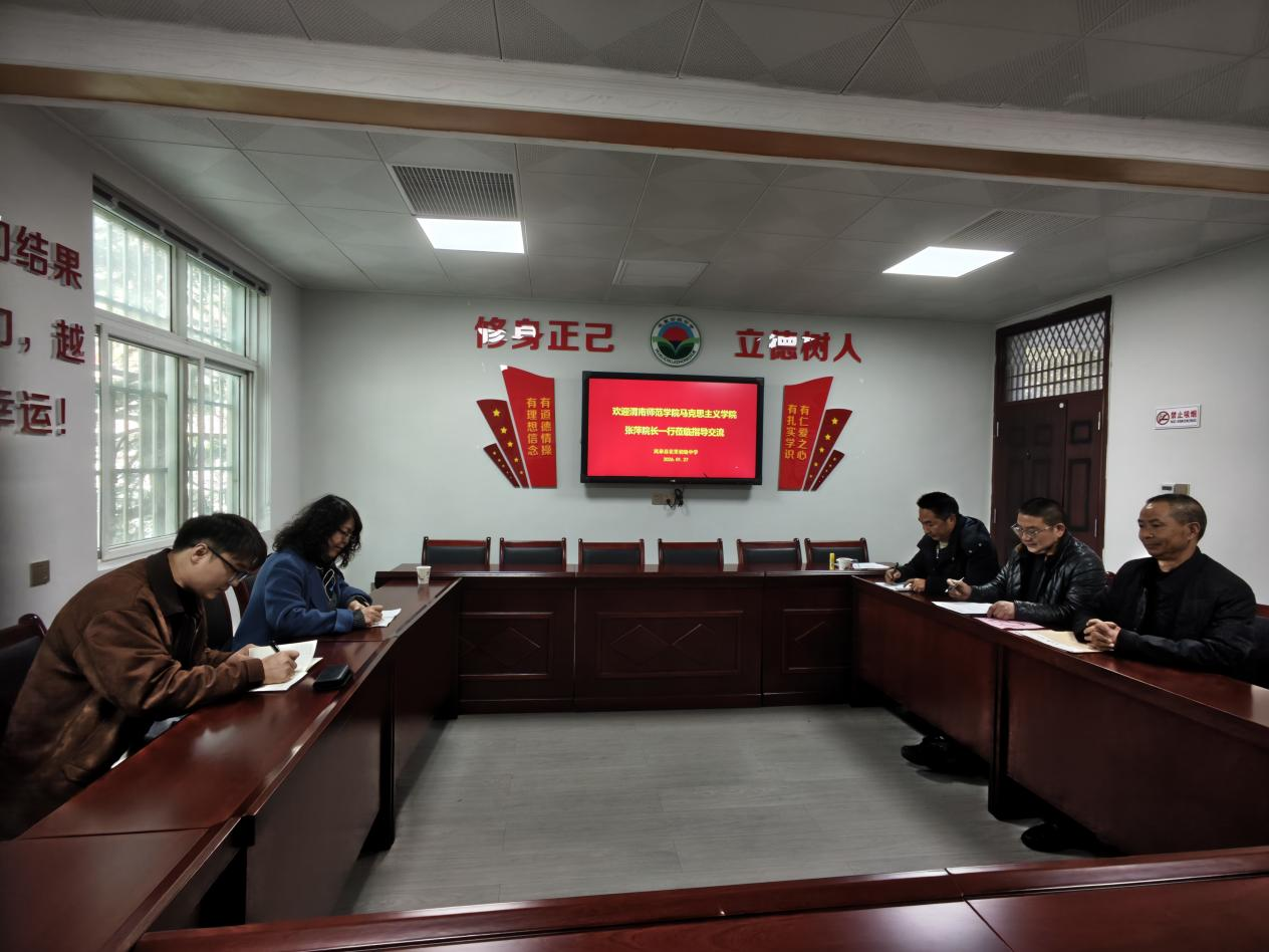 2026年1月27日,马克思主义学院院长张萍、青年教师周韶尉一行赴安康市岚皋县,先后走进岚皋县花里初级中学、岚皋中学开展人才培养方案修订专题调研。岚皋县花里中学校长杨大敏、办公室主任谢永贵、德育主任谢战、岚皋中学党总支书记王小勇、副校长陈涛、党政办主任刘宏、团委书记刘忠伟、思政学科教研组教师代表参加了座谈会。