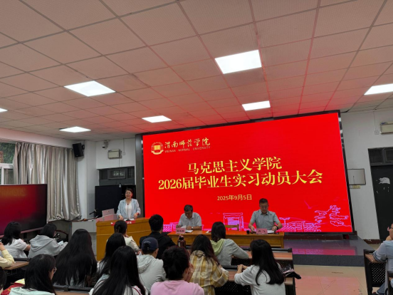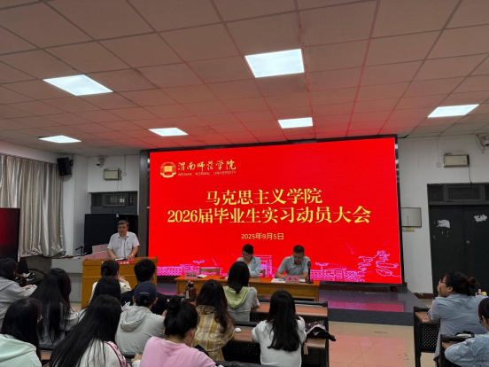 为切实做好2026届毕业生教育实习工作,帮助学生明确实习任务与要求,马克思主义学院于2025年9月5日在1101召开实习动员大会。马克思主义学院院长张萍、副院长路玉麟、毕业班辅导员以及2026届全体毕业生参加本次动员会,会议由党总支副书记肖飞主持。