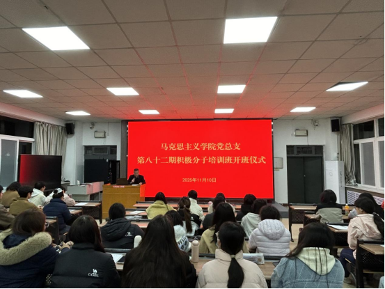 11月10日晚,为深入学习贯彻党的二十大四中全会精神,切实加强入党积极分子的培养教育,马克思主义学院党总支成功举办第82期入党积极分子培训班开班仪式。学院党总支副书记、院长张萍、党总支副书记肖飞及全体参训学员参加仪式,仪式由党务秘书蔺怡轩主持。