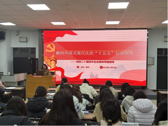 最后,党总支副书记、院长张萍以《解码中国式现代化的“十五五”行动纲领》为题讲授专题党课。张院长就“十五五”时期经济社会发展的指导方针和主要目标,“十五五”时期经济社会发展的战略任务、重大举措和根本保证等方面进行了解读。她寄语广大学子,希望他们坚定把个人理想追求融入党和国家事业之中,始终沿着习近平总书记指引的方向勇毅前行、奋勇争先,书写无愧于时代、无愧于人民、无愧于青春的壮丽篇章。她的讲解生动形象、深入浅出,使入党积极分子对十五五规划有了更清晰、更深入的认识。