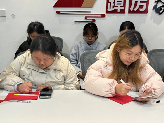 活动现场,红色榜样事迹片段铺就精神底色,学子们手持红卡双向书写:正面誊录榜样的坚韧故事,让先辈的“韧性密码”落地生根;反面记录当下的压力困惑,让情绪有了栖居之所。笔锋起落间,有人以简笔画为卡片添彩,有人借文字为信念注脚,红色的纸张上,既有精神的传承,也有青春的鲜活。