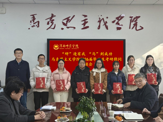 11月27日下午,马克思主义学院于1218会议室开展“‘研’途有我,‘马’到成功”2026届毕业生考研慰问活动,为逐梦学子送上暖心关怀与真挚祝福,助力大家以从容姿态迎战大考、勇创佳绩。党委委员、副校长蒋平江,马克思主义学院院长张萍,党总支副书记肖飞,副院长单剑锋,副院长路玉麟,全体辅导员及2022级考研学生参加本次活动。
