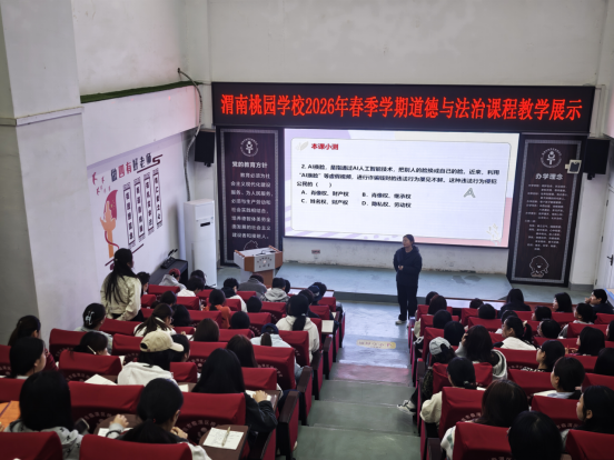本次见习紧扣师范生素养提升核心目标,内容丰富、务实高效。全体师生首先参加桃园学校2026年春季学期道德与法治课程教学展示活动,现场观摩一线思政教师示范课。授课教师立足新课标要求,结合学情设计互动环节,将生活案例、价值引领与课堂教学深度融合,展现了扎实的教学功底与鲜活的课堂样态。见习学生认真聆听、细致记录,直观感受初中思政课堂的教学逻辑与育人艺术,对教学方法、课堂组织与学情把控有了真切认知。