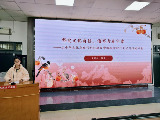 11月4日上午,马克思主义学院分团校青年马克思主义者培养工程第一次团课在1101教室顺利开展。本次团课由团委书记陈晨担任主讲,主题为“坚定文化自信,谱写青春华章”。 陈晨聚焦何为文化自信?为何要坚定文化自信?新时代青年如何践行文化自信?三个问题,从中华文化与现代科技融合的视角切入,借助典型案例讲述新时代文化自信的力量。一是文化自信从来都不是口号,是中华文化与现代科技交融碰撞后引领世界的底气与豪情。这种自信既源于5000年文明的深厚积淀,也来自新时代中国科技创新的蓬勃生机。二是文化自信是实现民族伟大复兴的内在支撑。自信才能自强,有文化自信的民族,才能立得住、站得稳、行得远。新征程上,文化自信所产生的精神力量是我们青年人更有信心去面对各种风险挑战、努力奋斗的不竭动力。三是作为新时代的青年,我们肩负着解码文化基因与创新科技表达的双重使命,要让千年智慧在创新中传承,要让东方美学在交融中绽放,向世界展示中国价值和中国成就。 11月4日晚上,马克思主义学院分团校顺利开展了第二次团课培训。本次团课由学生会主席团成员陆陈婧同学主讲。她引领学员们从团员的视角出发,深入探讨了在学生工作中如何切实履行团员的义务与使命。她号召全体团员,应当深植服务情怀,将服务同学、凝聚青年、传递正能量视为核心追求;自觉锤炼实干能力,在基层班级、社团等多样化的服务场景中不断磨砺自我。她呼吁学员们在服务中茁壮成长,在实干中稳步前行,为新时代团员队伍的建设注入了强大的动力。